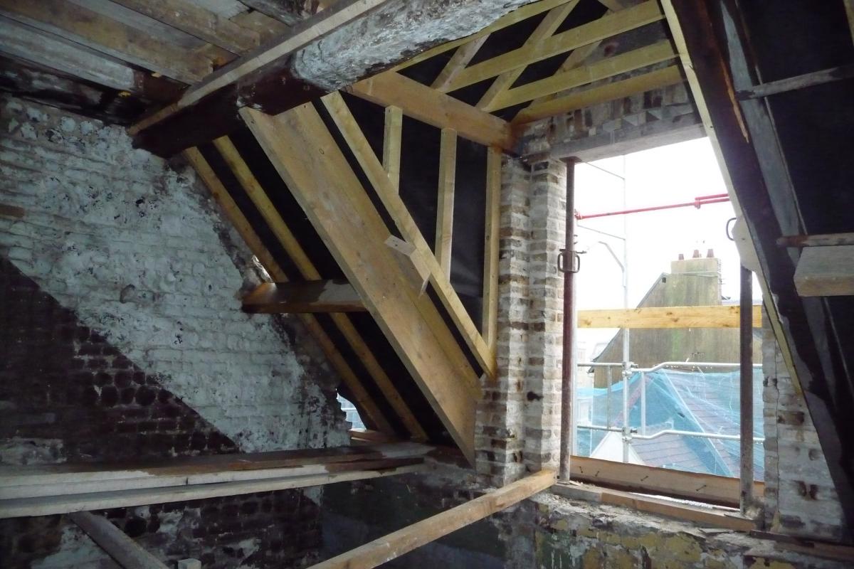 Toutes les lucarnes sont neuves. Celle en maçonnerie sur la façade principale, non présente à l’origine sur ce bâtiment, a été réalisée à la demande de l’architecte des bâtiments de France pour rappeler les lucarnes traditionnelles de Dieppe. Les deux autres lucarnes en bois sont également neuves.